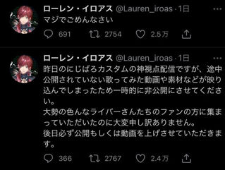 にじさんじさん、「ファビョる」を使っていたのがローレンだけでないことが判明してしまう