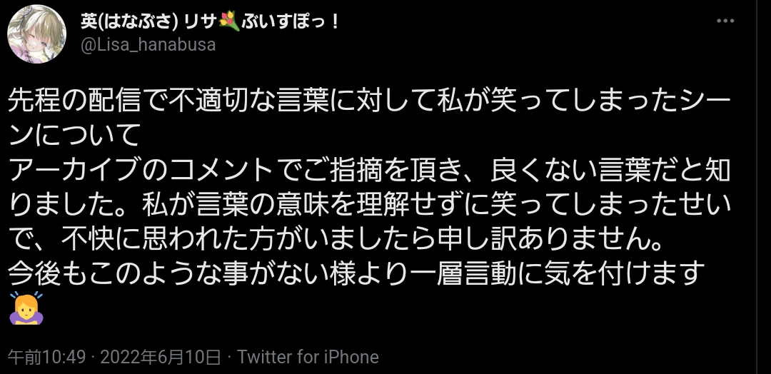 リサ ぶいすぽっ! @Lisa_hanabusa (2022/06/10 10:49:07)