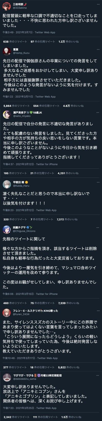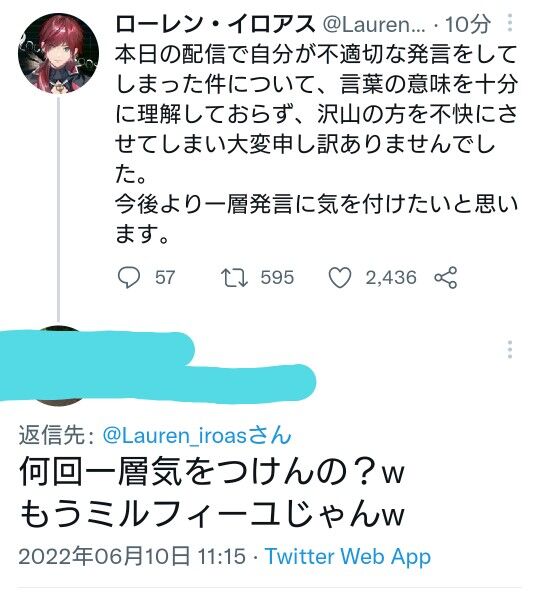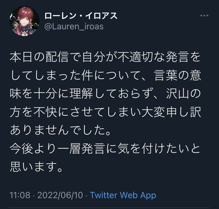 今後もこのような事がない様より一層言動に気を付けます???♀?