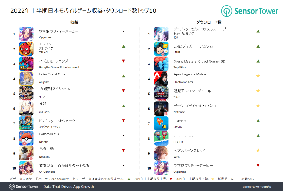 約10年やってるのにまだトップ3のパズドラとモンストはなんなんだよ