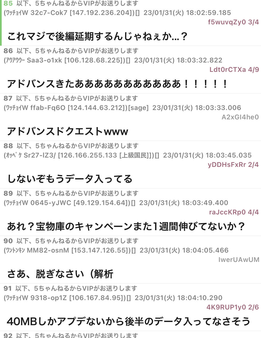 1月下旬に間に合ってるじゃんって運営擁護してた連中も後ろから刺してて草