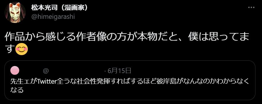 田舎で番組見てるだけの一視聴者からしたら作品が面白ければそれでいいし、作者の性格がーとか言われても知らんがな