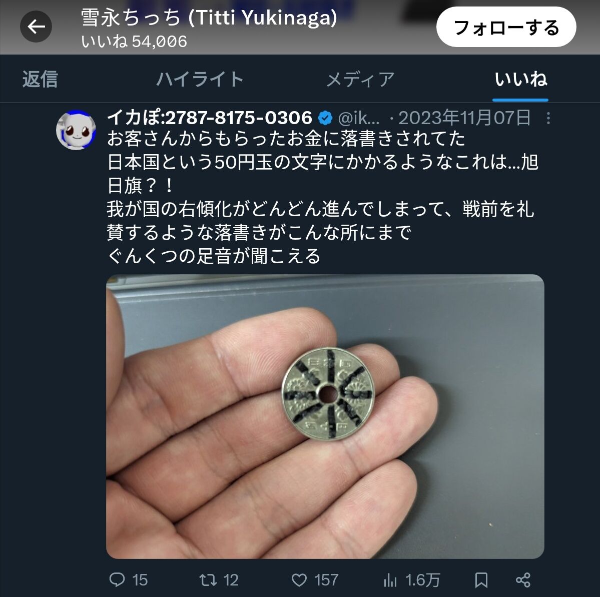 この人がどういう意図でいいねしたかは分からないけど