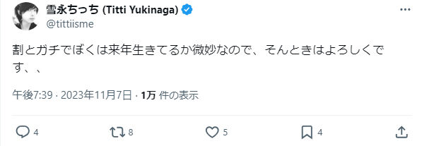 雪永ちっち氏がツイートを一部否定されたので、雪永氏の主張&滝沢の補足を追記しておきます。