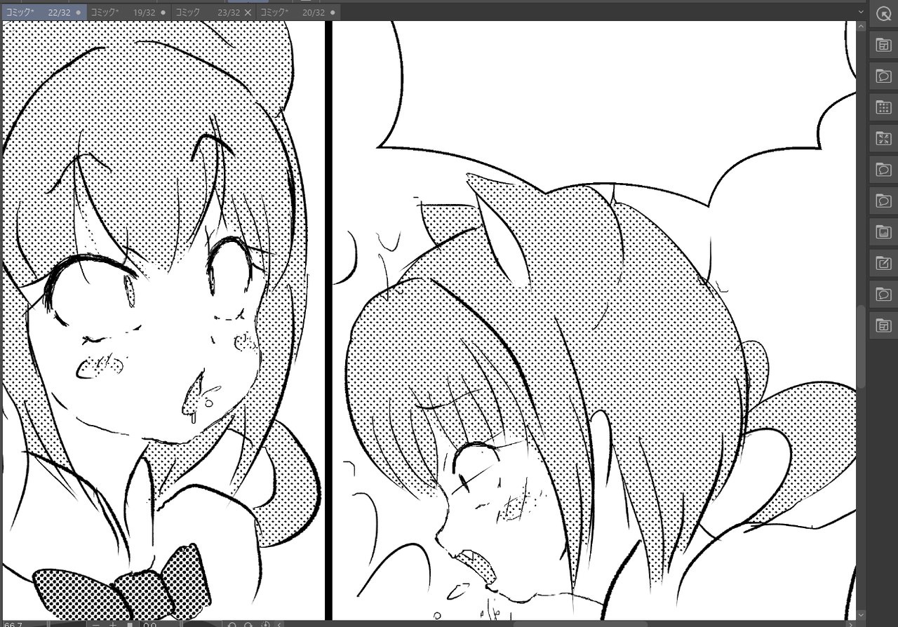 毛先の線が交差してる部分とか塗りのはみ出しとか消そうともしない