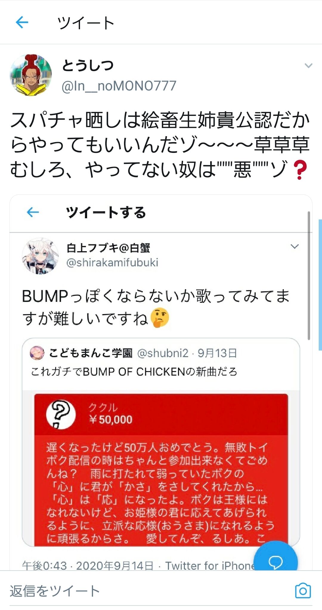 スパチャ晒しとかいう言葉意味わからんくて草自分で晒しとるんやぞ