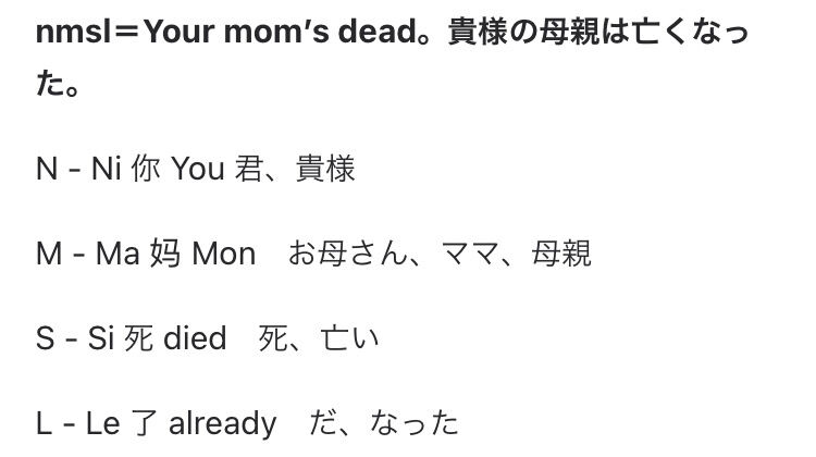 nmslはニーマースーラ、お前の母親は死んだって意味