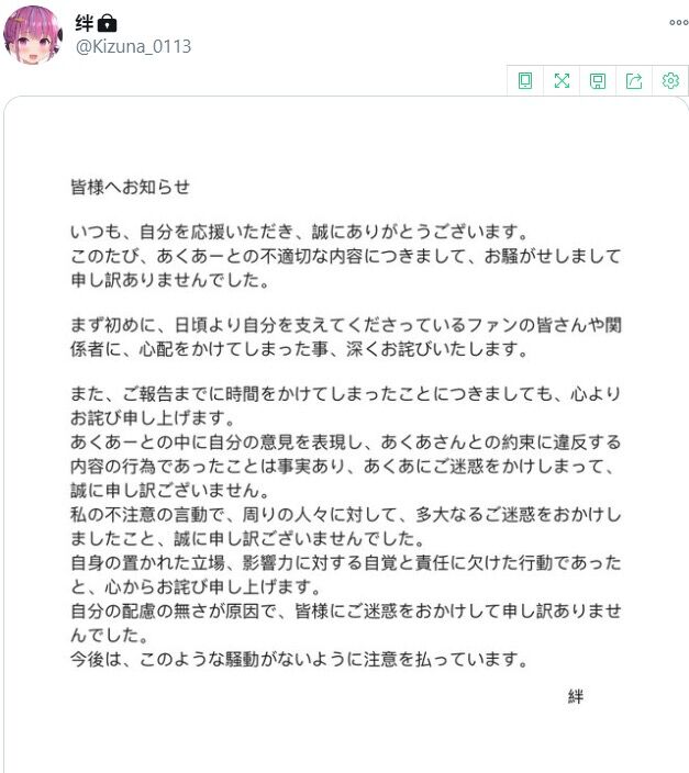 絆:あんた預言者か?俺は確かに鍵垢でホロの声明をコピペする気だ。